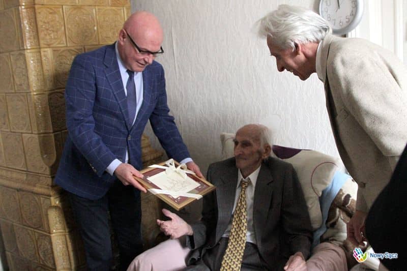 Nie jest już tak sprawny jak jeszcze trzy lata temu, kiedy pomagał synowi rąbać drzewo na opał. Doskonale zdaje sobie jednak sprawę z tego, kto go odwiedził. – Panie prezydencie, Nowy Sącz to bardzo piękne miasto! – zapewnia swojego gościa. Jubilatowi podobają się zwłaszcza kwiaty na nowosądeckich skwerach. Dostrzega także zmiany, jakie zachodzą w naszym mieście. – Kiedy tu wróciłem, to go nie poznałem – zapewnia wspominając krótki wyjazd.