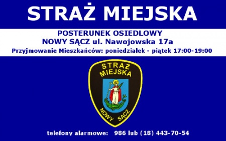 Całą dobę można dzwonić na numery alarmowe Straży Miejskiej w Nowym Sączu: 986; (18) 440-56-00; (18) 443-70-54; 662-164-630.