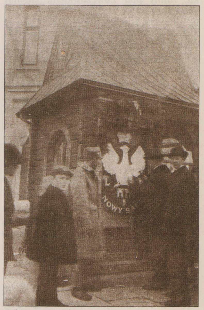 Drewnianą budkę w stylu podhalańskim ustawiono u zbiegu ulicy Kościuszki i Jagiellońskiej jeszcze w czasach I Wojny Światowej. Jak przypomina Leszek Migrała w “Ulica Jagiellońska w Nowym Sączu od końca XIX wieku do 1945 roku – mieszkańcy i zabudowa” był to prezent sądeckich kolejarzy dla Ligi Kobiet, która to organizacja sprzedawała w kiosku czasopisma, książki i kwiaty z przeznaczeniem na cele charytatywne.