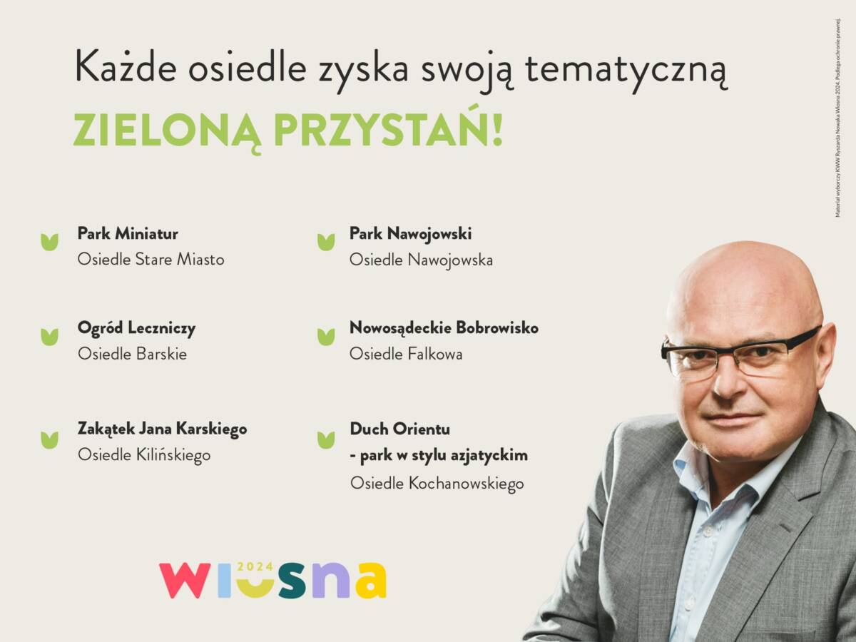 „Park Miniatur” z miniaturami zamków doliny Dunajca, „Ogród Leczniczy” opierający się na pobudzeniu zmysłów człowieka i historyczny skwer „Zakątek Jana Karskiego”! To tylko niektóre parki tematyczne, jakie zamierza urządzić w Nowym Sączu Ryszard Nowak, bezpartyjny kandydat na prezydenta Nowego Sącza. Stworzenie nowych ZIELONYCH PRZYSTANI w mieście, to jeden z jego ważniejszych punktów programu wyborczego, po m.in. wprowadzeniu dopłat do wody i ścieków dla wszystkich mieszkańców, doprowadzeniu do finału najważniejszych inwestycji w mieście i przywróceniu izby wytrzeźwień.