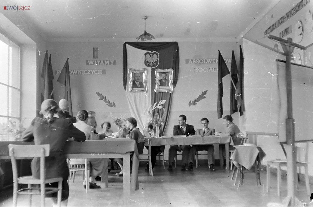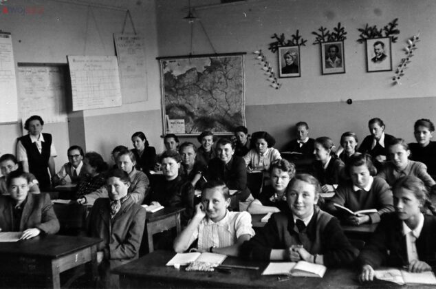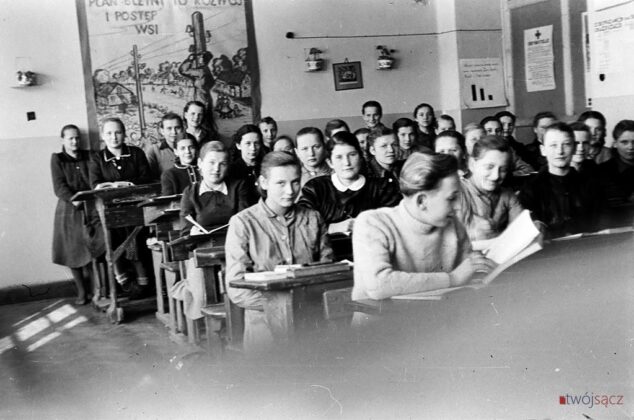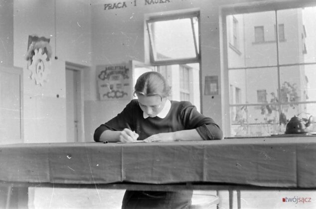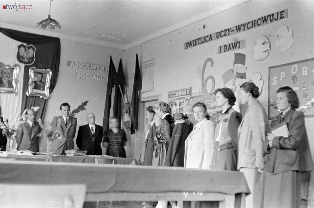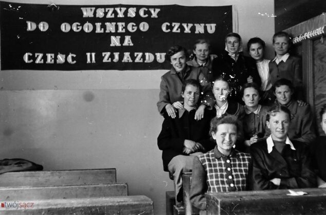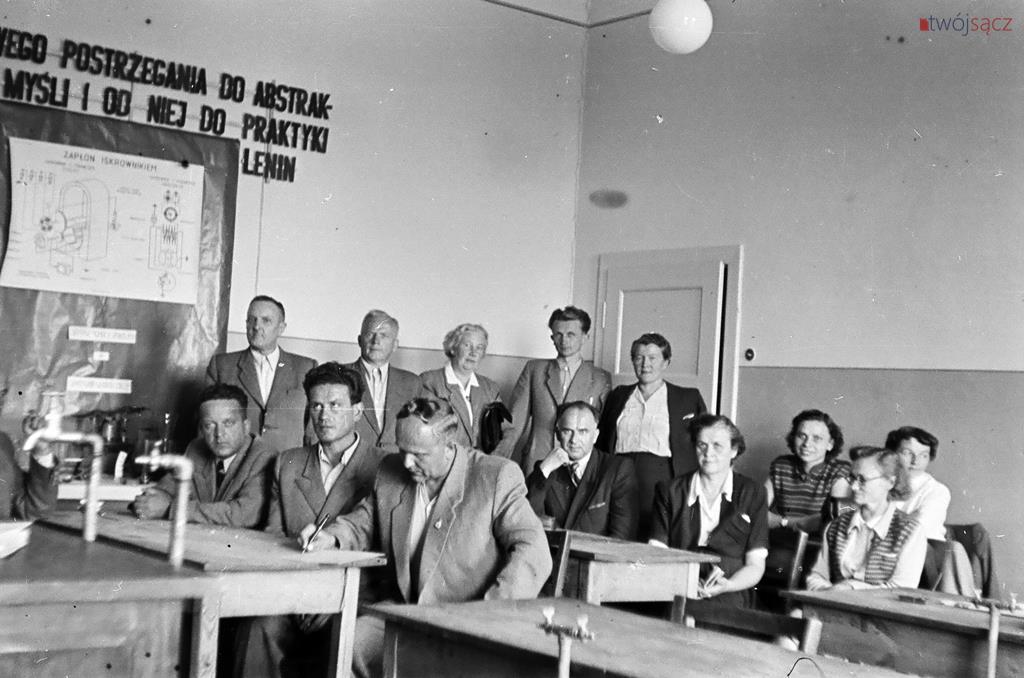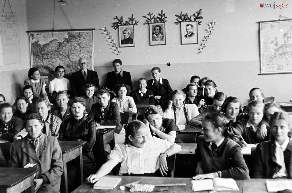 Uczniowie i nauczyciele z nowosądeckich szkół w latach 50. Bardzo wiele różni ubiór uczniów, wygląd ówczesnych klas czy ich wyposażenie od dzisiejszych. Diametralnie inne są też hasła na ścianach klas i korytarzy. Wspólne z dzisiejszymi są na pewno nieco beztroskie chwile z czasu młodzieńczej edukacji i częsty uśmiech na twarzach szkolnej młodzieży. Mimo, że w tamtych, ciężkich czasach wielu z uwiecznionych na tych zdjęciach być może straciło wszystkich bliskich w czasie zakończonej zaledwie kilka lat wcześniej wojnie… Być może chodzili głodni, nie mieli porządnych butów i nie znali pojęcia kieszonkowe. Ale to już temat na inną opowieść.