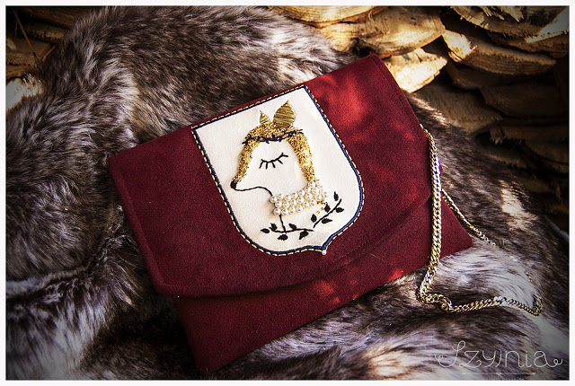 Jak już wspomniałam, przynajmniej z torebkami nie mam problemu. Tym razem zachciało mi się czegoś „z kosmosu”, zabawnego i eleganckiego. A gdyby tak sarenka…. Spodobało mi się haftowanie i postanowiłam pójść o jeden krok dalej, tym razem wykorzystałam koraliki, perełki i złotą nić.
