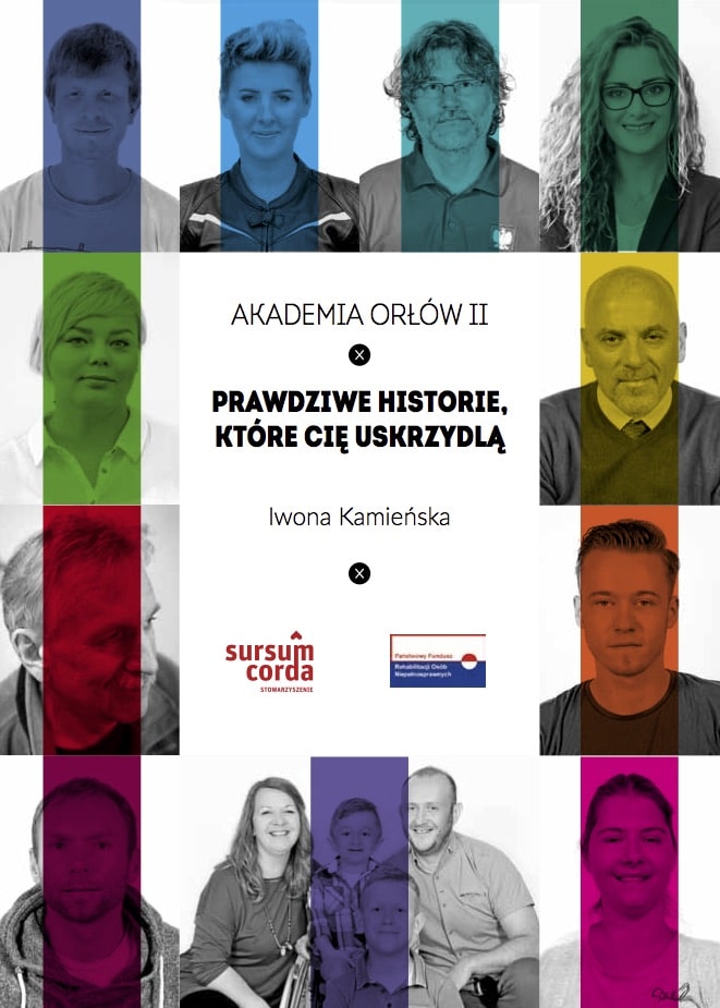 – Dziwny jest świat ze swoimi niespodziankami, ale szalenie piękny. Niezależnie od tego ile nieszczęść stało się Twoim udziałem i ile jeszcze się stanie, warto pofrunąć po radość. Wiem to na pewno. Wśród bohaterów pierwszej części „Akademii Orłów” jest ktoś, z kim osobiście przemierzałam drogę od strachu do spokoju i od bólu do radości – mój mąż Artur. Gdybyśmy nie spotkali ludzi, którzy pokazali którędy iść, żeby nie pobłądzić, byłoby niewesoło. Za te drogowskazy dziękuję dziś – bo okazja jest ku temu świetna – Kasi i Wojtkowi Romanowskim, Magdzie Kotlarz, Monice Kuszyńskiej i Kubie Raczyńskiemu. Każdy z nich zostawił ślad w pierwszej części „Akademii”, do której odsyłam ciekawych (darmowy ebook i audiobook dostępny w serwisie www.sc.org.pl). Każdy z nich przyczynił się do tego, że dziś – dzięki przyjaciołom ze Stowarzyszenia Sursum, Corda – trafia w Twoje ręce część druga. Powstała dlatego, że drogowskazami warto się dzielić – kontynuuje Iwona Kamieńska.