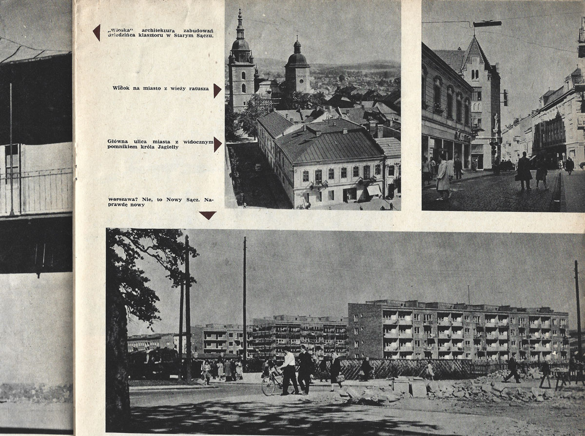 W materiale jest sporo zdjęć (autor K. Próchnicki), z których część pokazujemy. Naszym zdaniem najciekawszy jest widok z dopiero co rozbudowanej alei Batorego na budowę bloków. To budynki z obecnymi adresami Ludwika Zamenhofa 8 i 4 oraz Limanowskiego 2. W głębi widać blok przy ul. Żółkiewskiego. Podpis fotografii: „Warszawa? Nie, to Nowy Sącz. Naprawdę nowy”.