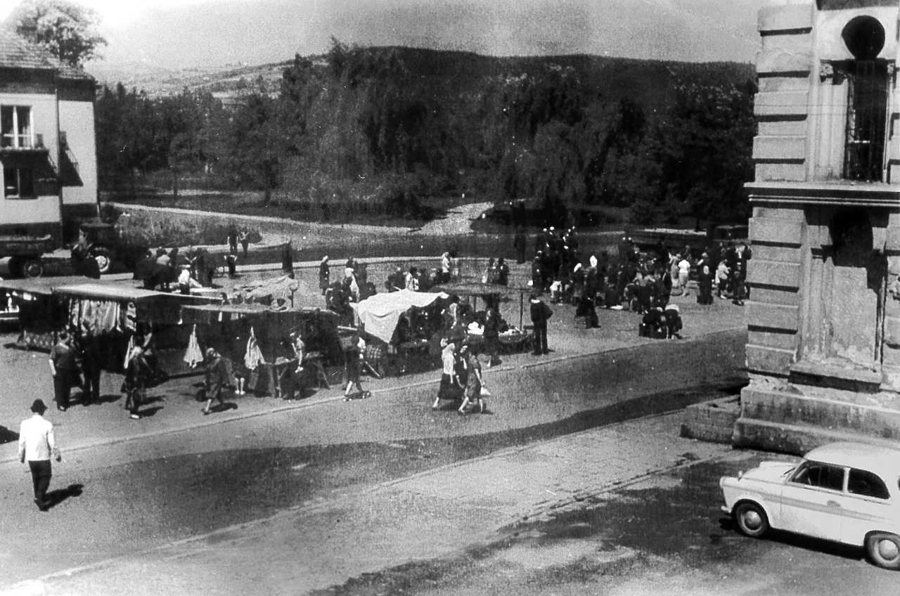 Na pustym placu od przy ul Berka Joselewicza, wzdłuż Kazimierza Wielkiego i ul. Bożniczej dostrzec można wozy, konie i stragany – jak wspominają starsi mieszkańcy miasta w tym miejscu funkcjonował po prostu targ. Pokazuje to inna ciekawa, publikowana po raz pierwszy fotografia, wykonana w latach 60.