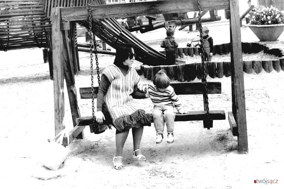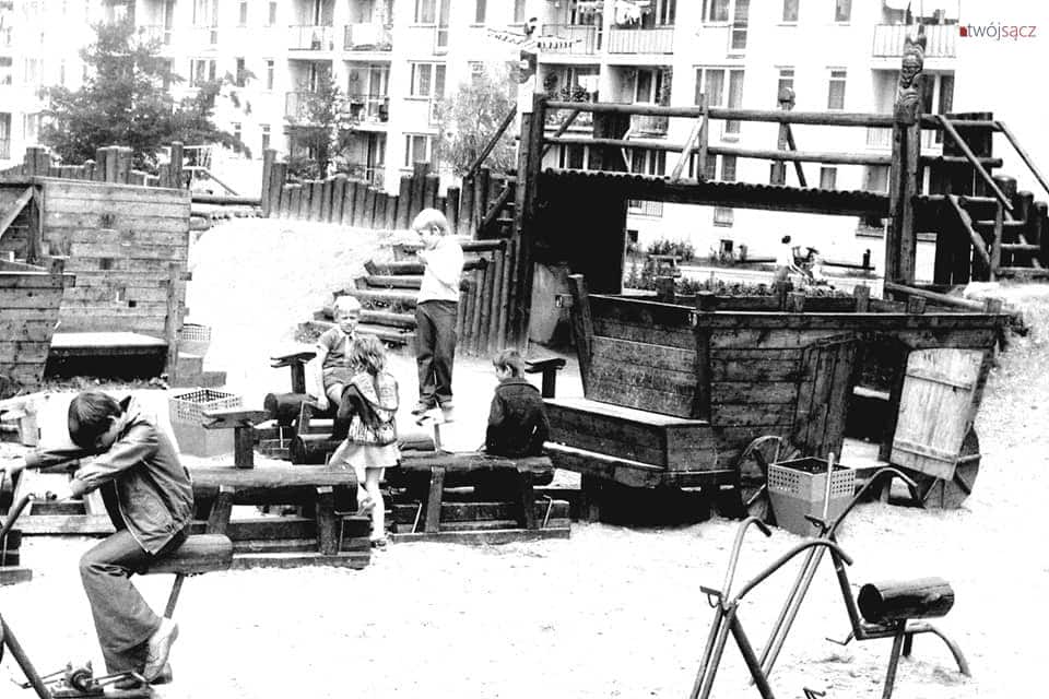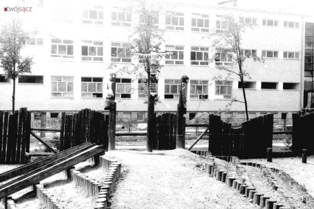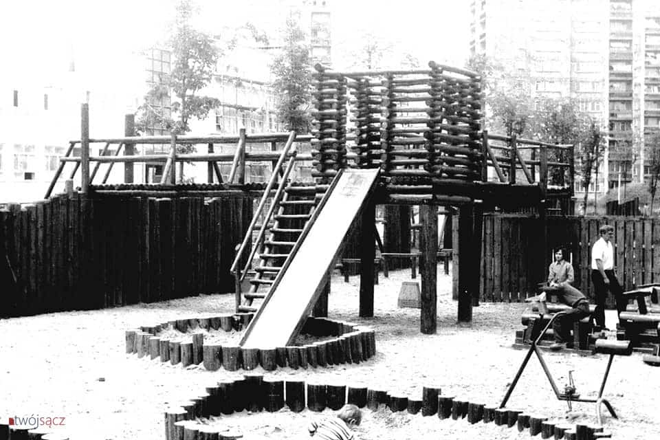 Przedstawiamy najbogatszą znaną nam dokumentację fotograficzną „indiańskiej wioski” – legendarnego placu zabaw na osiedlu Millenium. Fotografie wykonał w 1980 roku Mieczysław Somogyi (dziękujemy za udostępnienie!), uwieczniając wówczas na zdjęciach swoją małżonkę i syna.