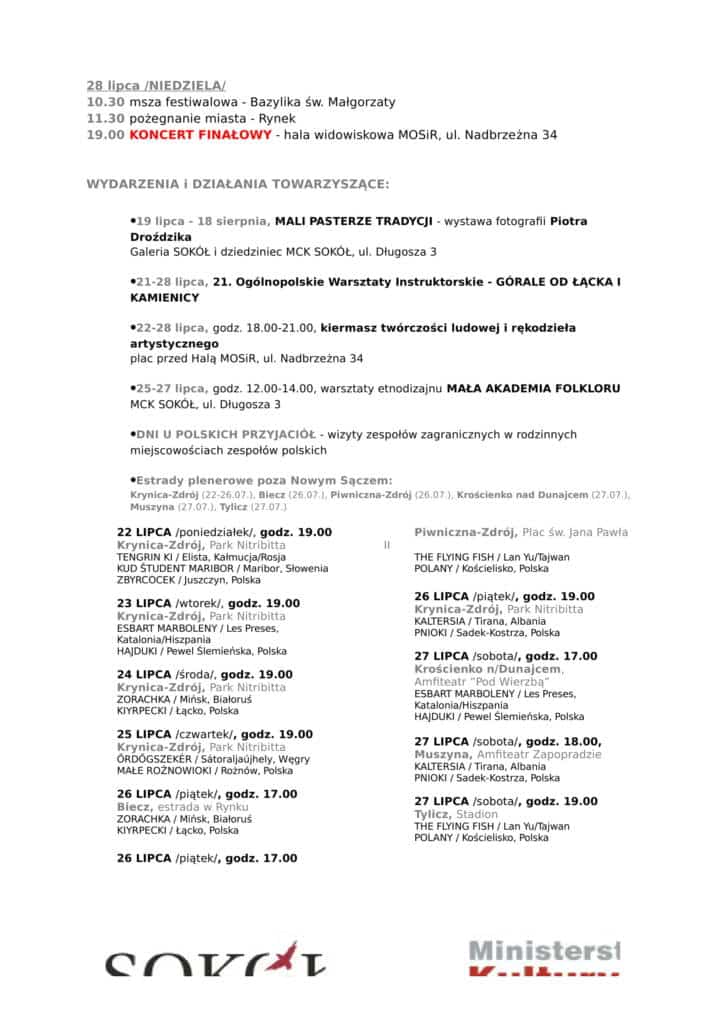 22 – 28 lipca w kasie MCK SOKÓŁ do godz. 16.00