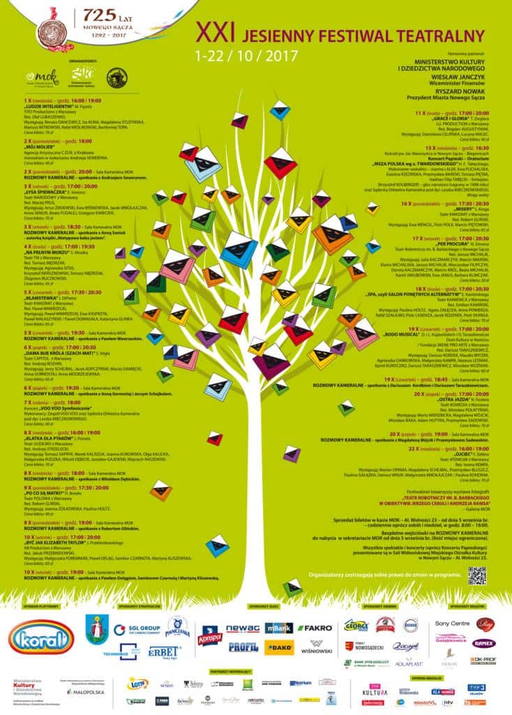 Program XXI Jesiennego Festiwalu Teatralnego, Miejski Ośrodek Kultury w Nowym Sączu – Al. Wolności 23, 1 – 22 października 2017 r.