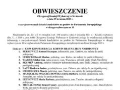 Kandydaci do Parlamentu Europejskiego w okręgu nr 10 małopolsko-świętokrzyskim (w kolejności rejestracji list)