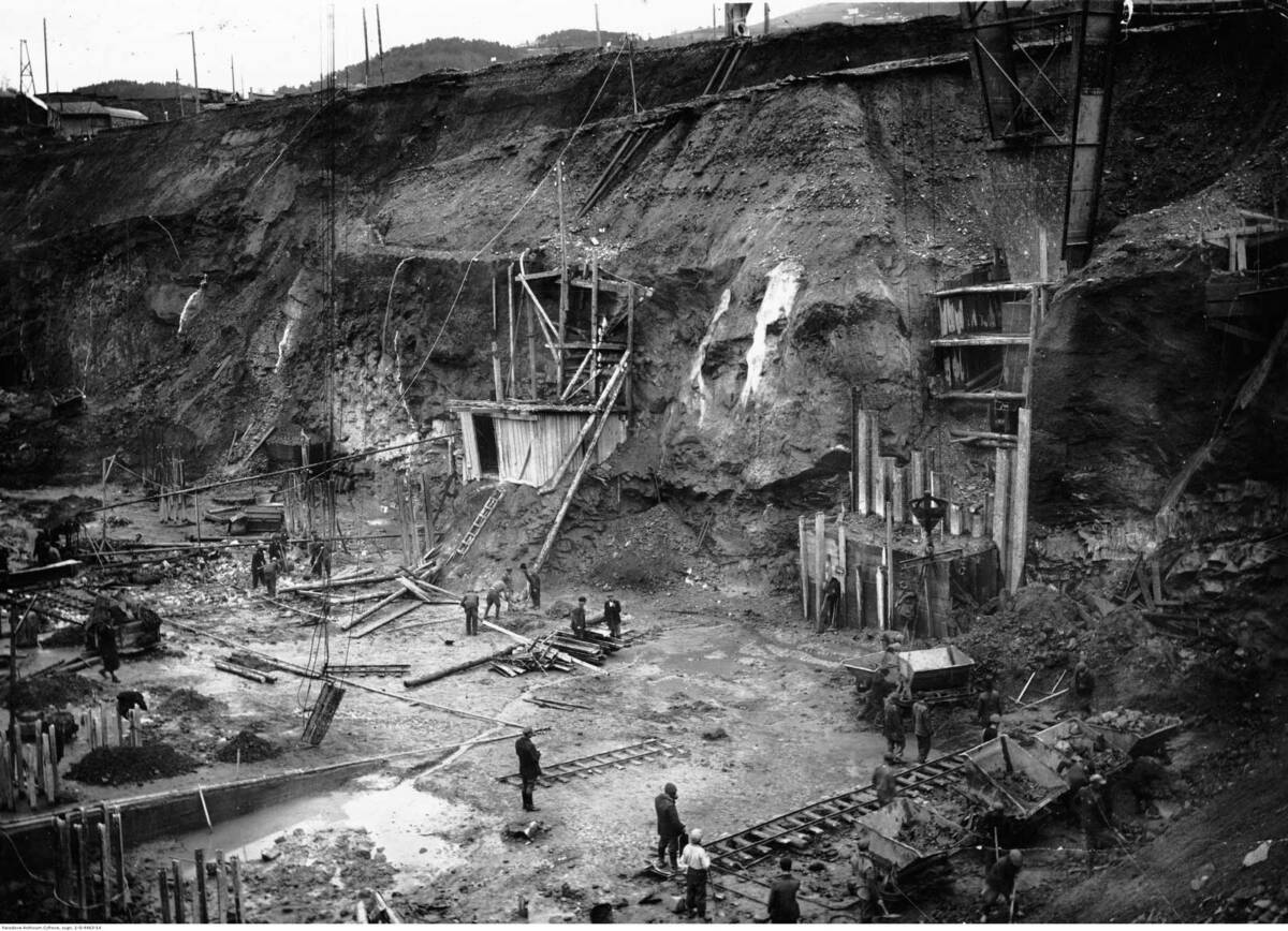 Na potrzeby inwestycji stworzono największą betoniarnię w ówczesnej Europie, którą założyła firma ze Stanów Zjednoczonych – Almacoa. Przy budowie na wysokościach (montownie ramy wysokiej na 86 m) pracowali ci sami ludzie, którzy montowali kolej linową na Kasprowy Wierch. Skały kruszono dynamitem. Specjalne wąskotorowe połączenie doprowadzono aż do Marcinkowic.