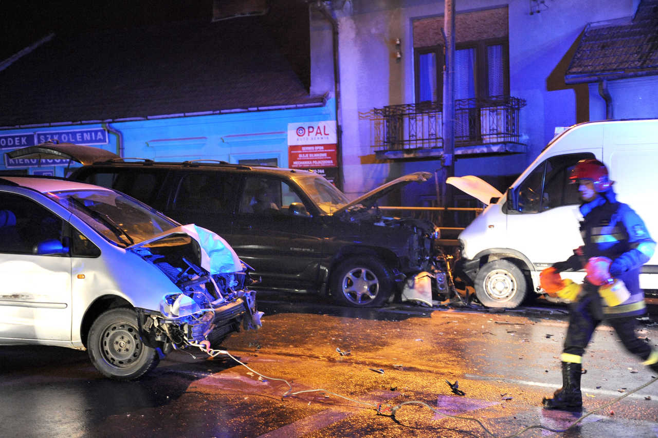 Według wstępnych ustaleń zawiniła kierująca Volkswagenem kobieta, która na czerwonym świetle wjechała z ul. Paderewskiego na Tarnowską. Tam zderzyła się z GMC które z kolei wpadło na jadące z naprzeciwka Renault. Do szpitala trafił kierowca GMC.
