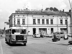I krótko jeszcze dwie kwestie. Na powyższym zdjęciu widzimy autobus Autosan Sancity, który jeździ po Nowym Sączu od roku 2011 (tę wiedzę mamy dzięki Galicyjskiemu Portalowi Komunikacyjnemu prowadzonemu przez Galicyjskie Stowarzyszenie Miłośników Komunikacji w Nowym Sączu). Natomiast na drugim planie mamy hotel. Na pierwszym zdjęciu o nazwie Orbis Beskid, z klasycznym neonem z lat 60. Druga fotografia to już aktualny hotel Beskid, ze zmienioną elewacją, wymienionymi oknami, zabudowanym tarasem. Trochę więcej o „Orbisie” można przeczytać w naszym tekście o knajpach z okresu PRL.