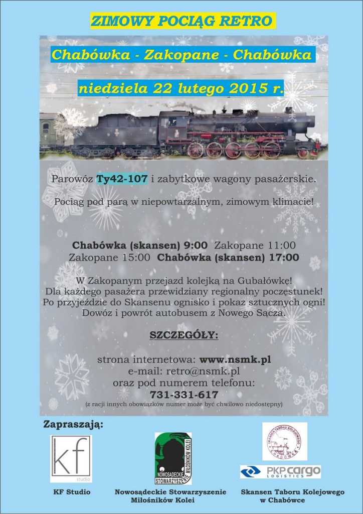 wycieczkę zabytkowym pociągiem retro do Zakopanego. Dla chętnych z Nowego Sącza i okolic podstawione będą autobusy które zawiozą uczestników do Chabówki, skąd pociąg wyrusza.